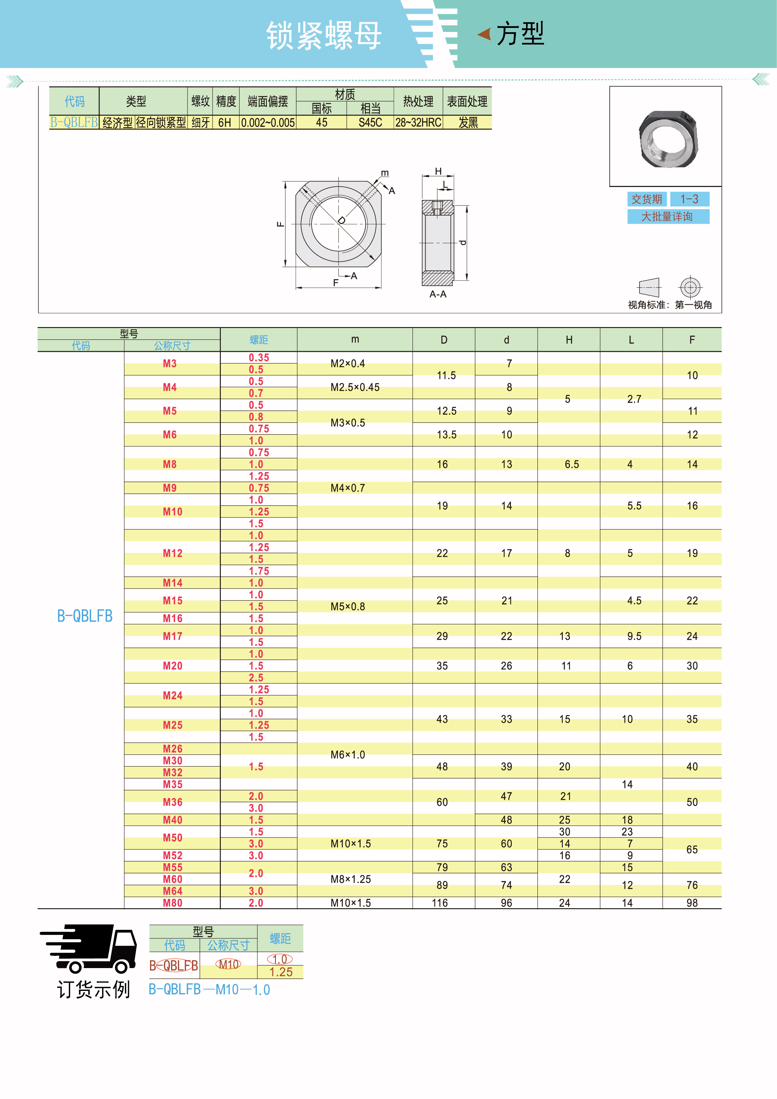 经济型锁紧螺母 径向锁紧型 方形 细牙