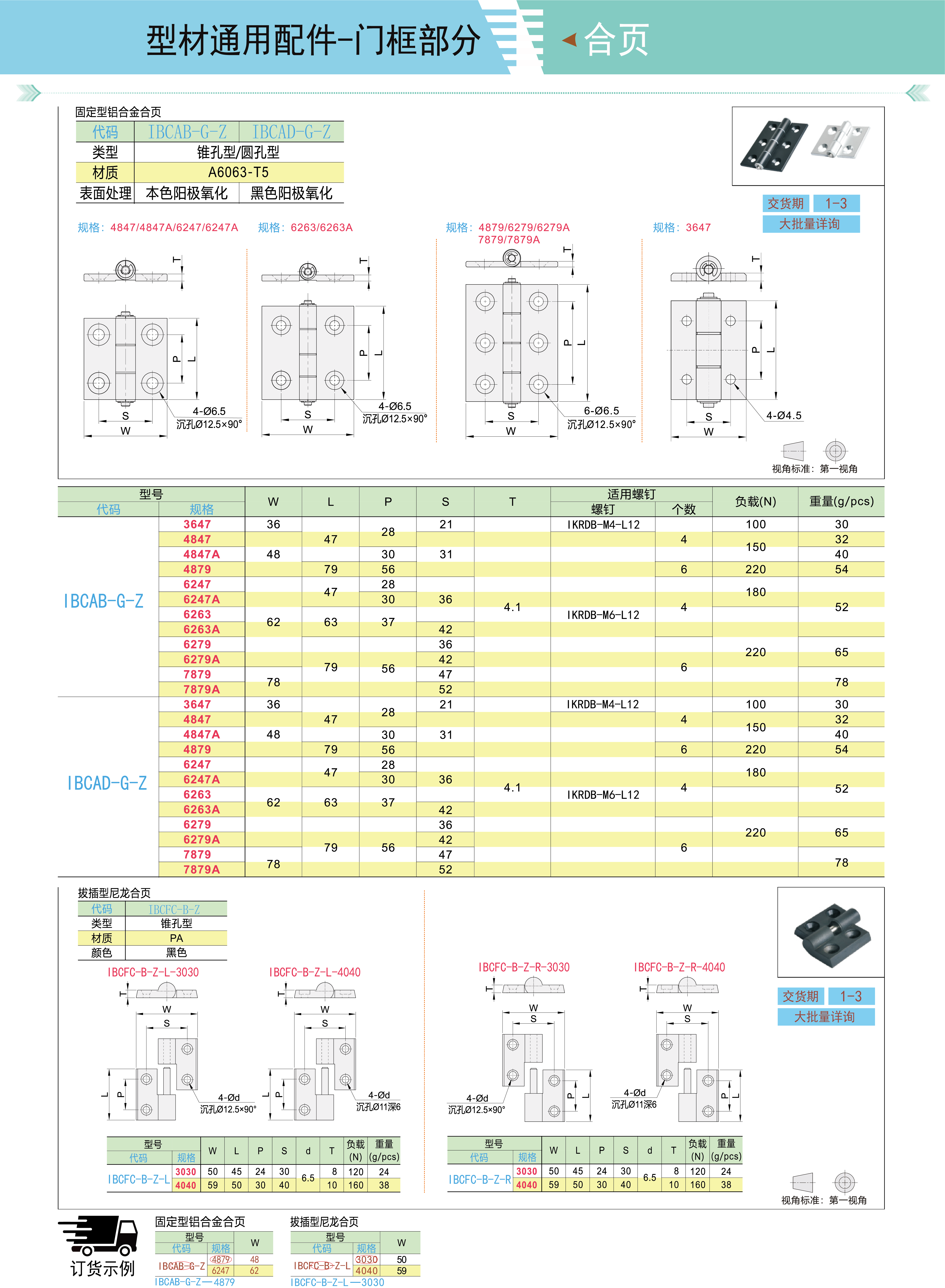 型材通用配件 固定型铝合金合页 拔插型尼龙合页 锥孔型 圆孔型