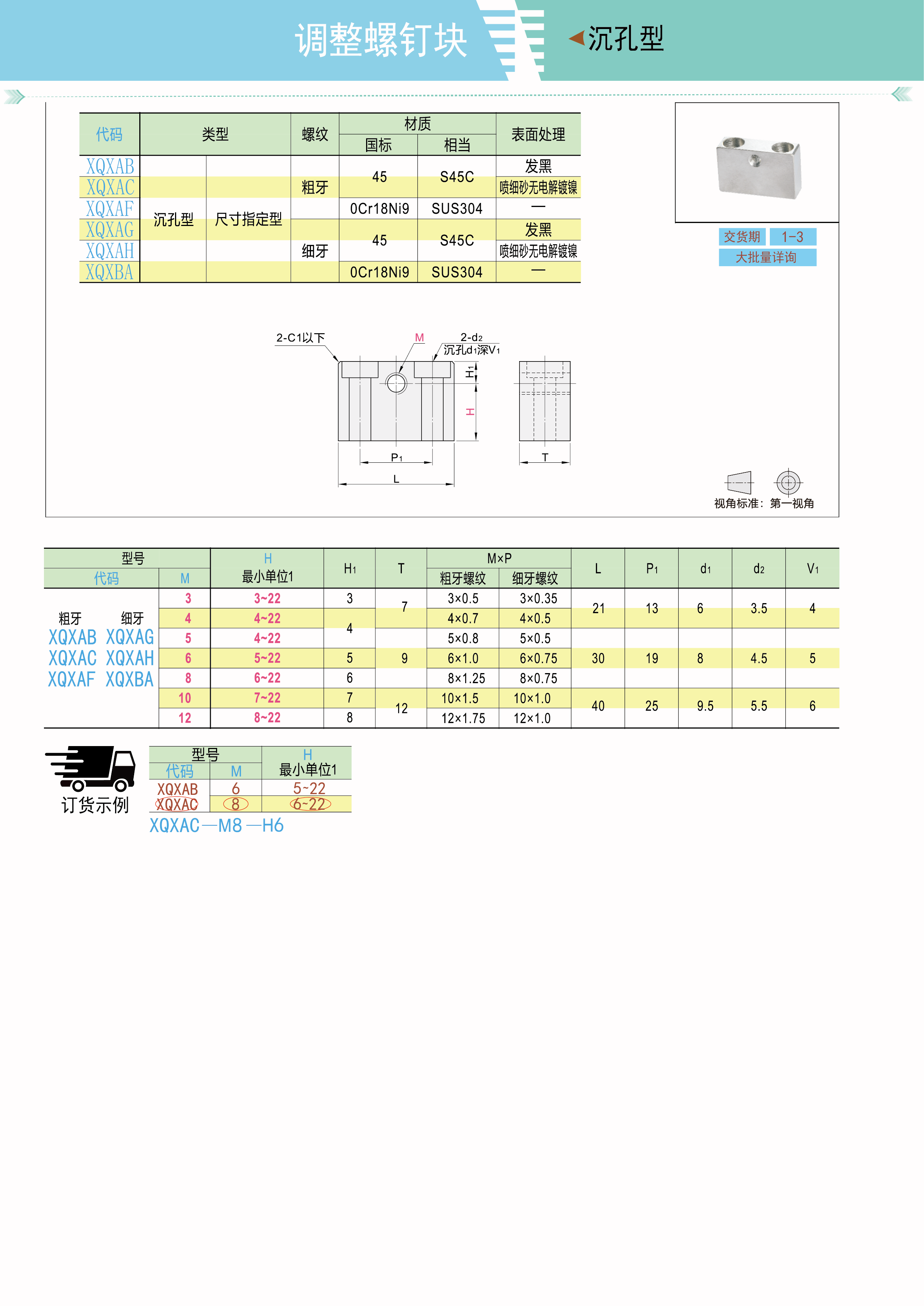 调整螺钉块 沉孔型 沉孔带螺钉型 粗牙 细牙