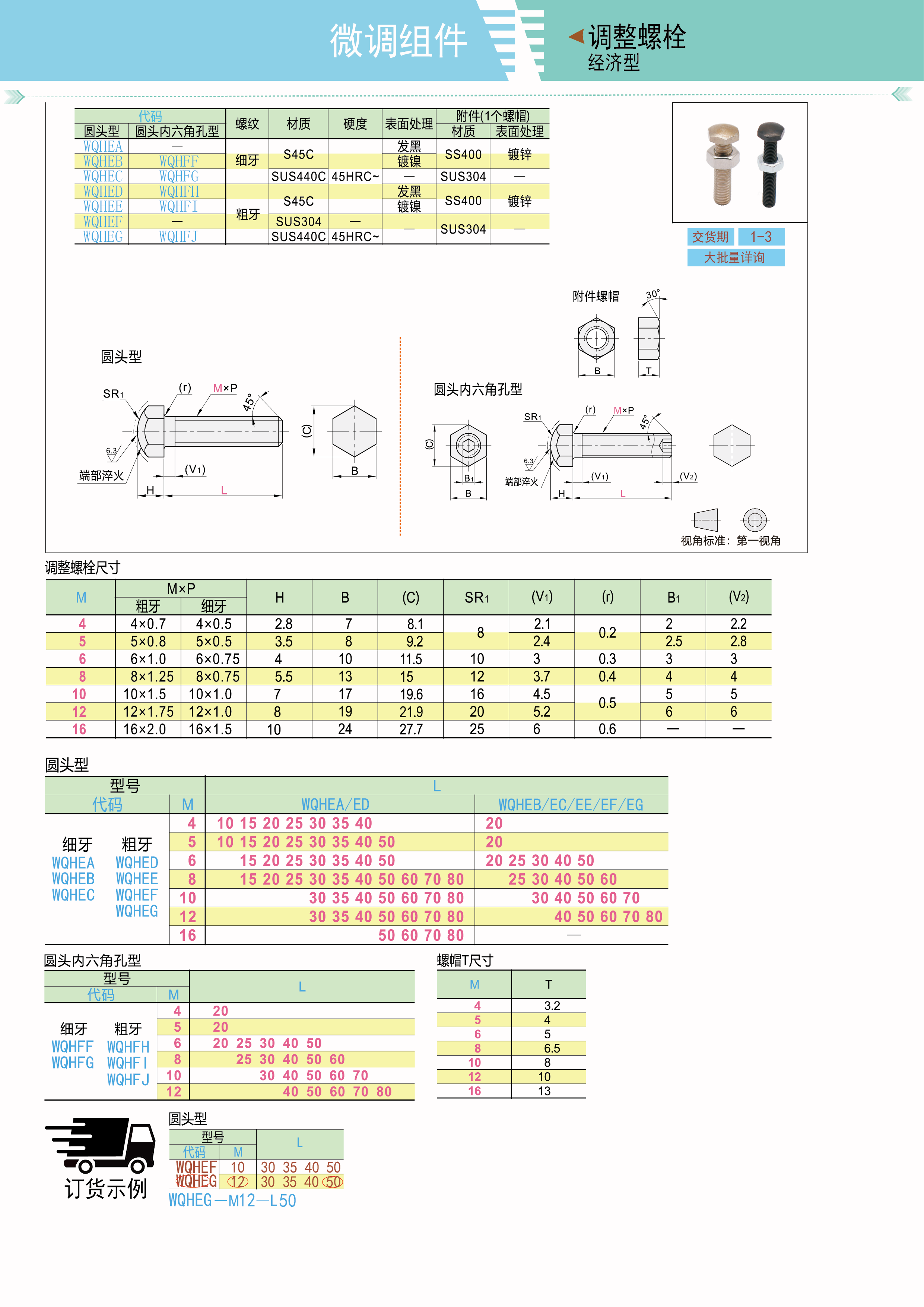 微调组件 调整螺栓 圆头内六角孔型