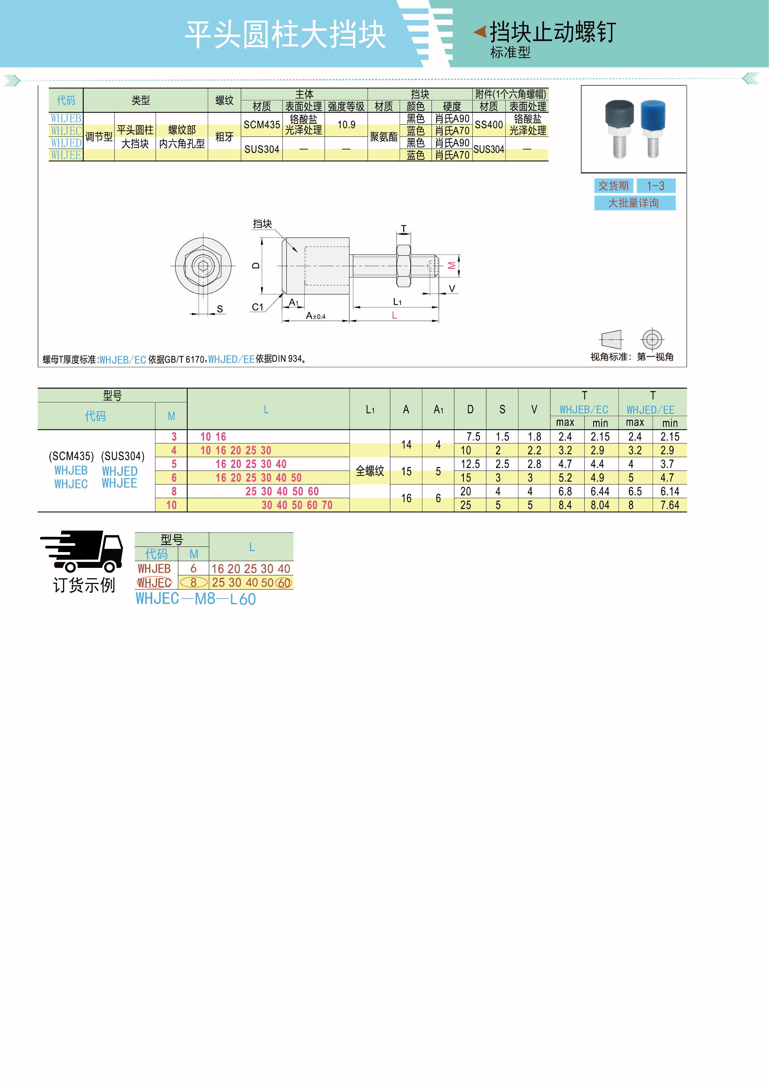 圆柱头挡块止动螺钉 调节型 标准型 螺纹部内六角孔型 粗牙