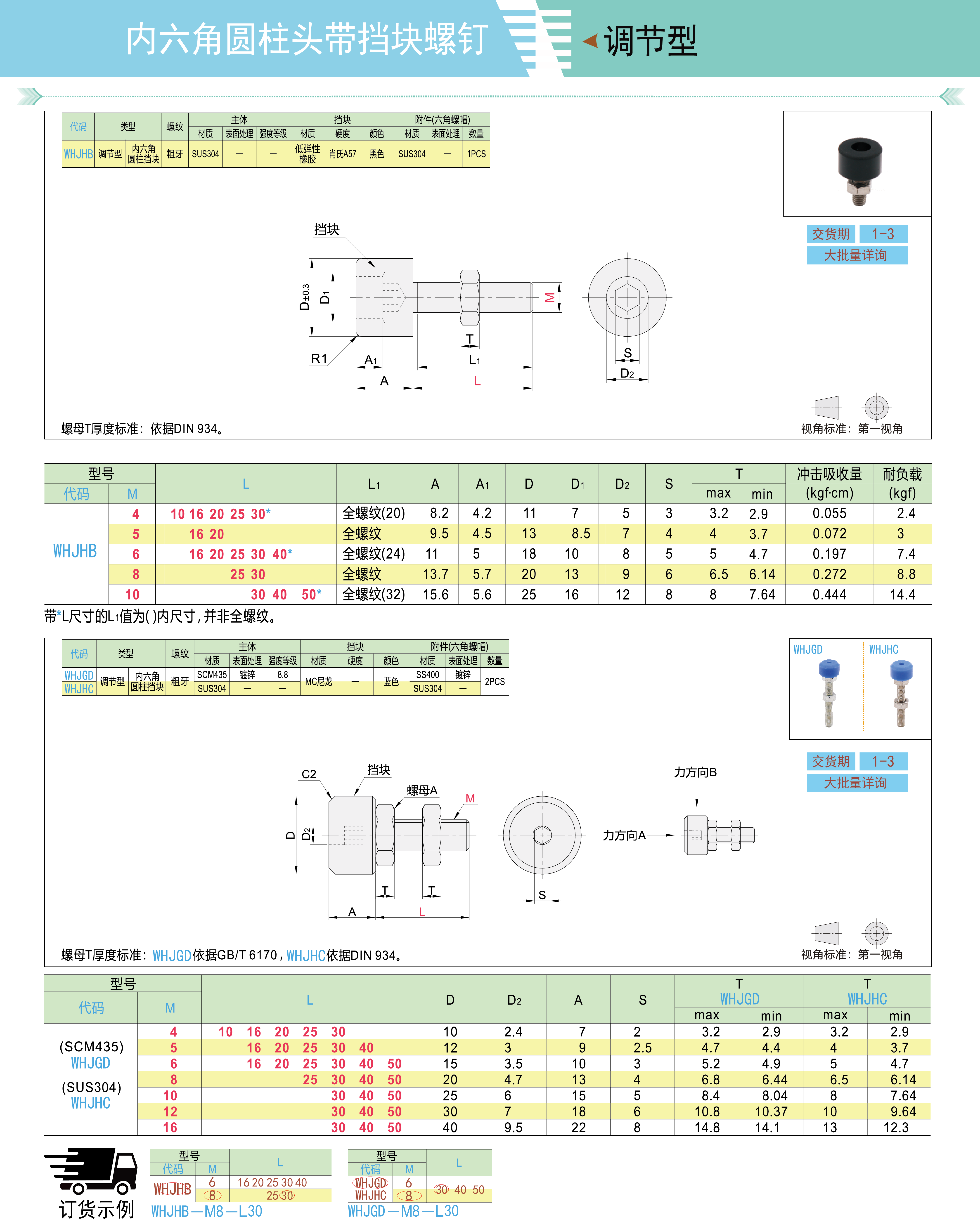 内六角圆柱头带挡块螺钉 调节型 粗牙