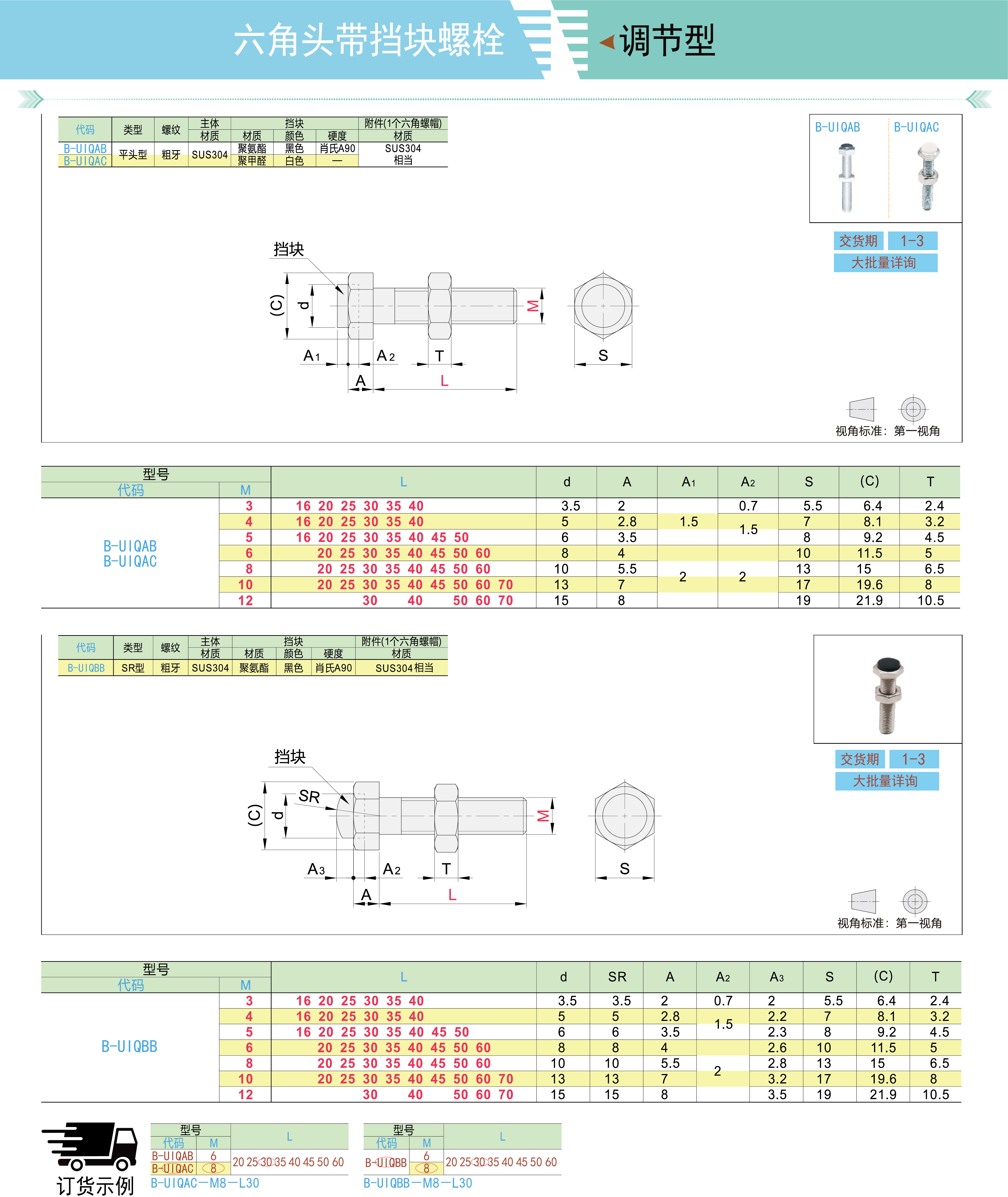 六角头带挡块螺栓 平头型 SR型 粗牙