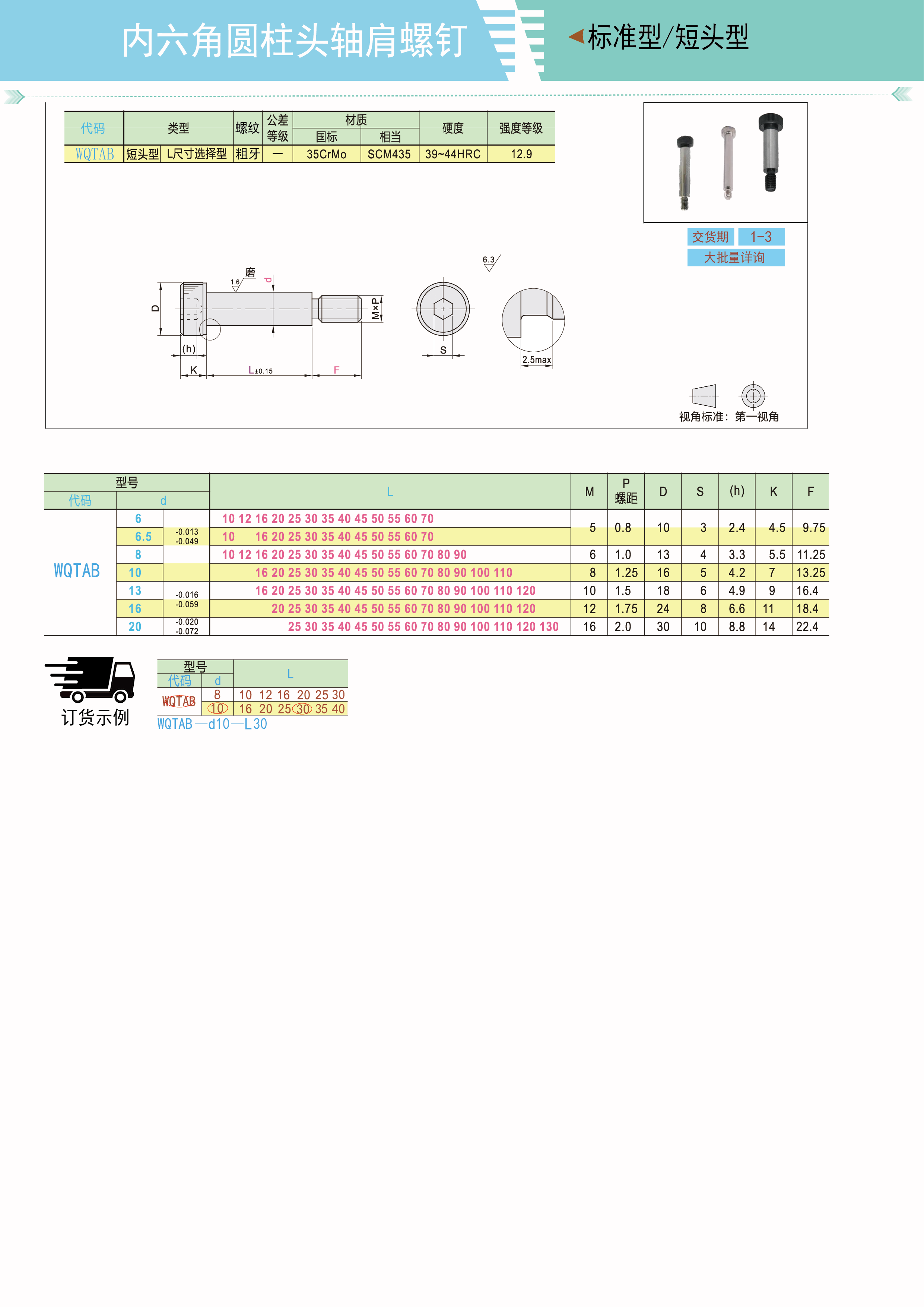 内六角圆柱头轴肩螺钉 短头型 粗牙 标准型短头型非标螺钉 L尺寸选择型