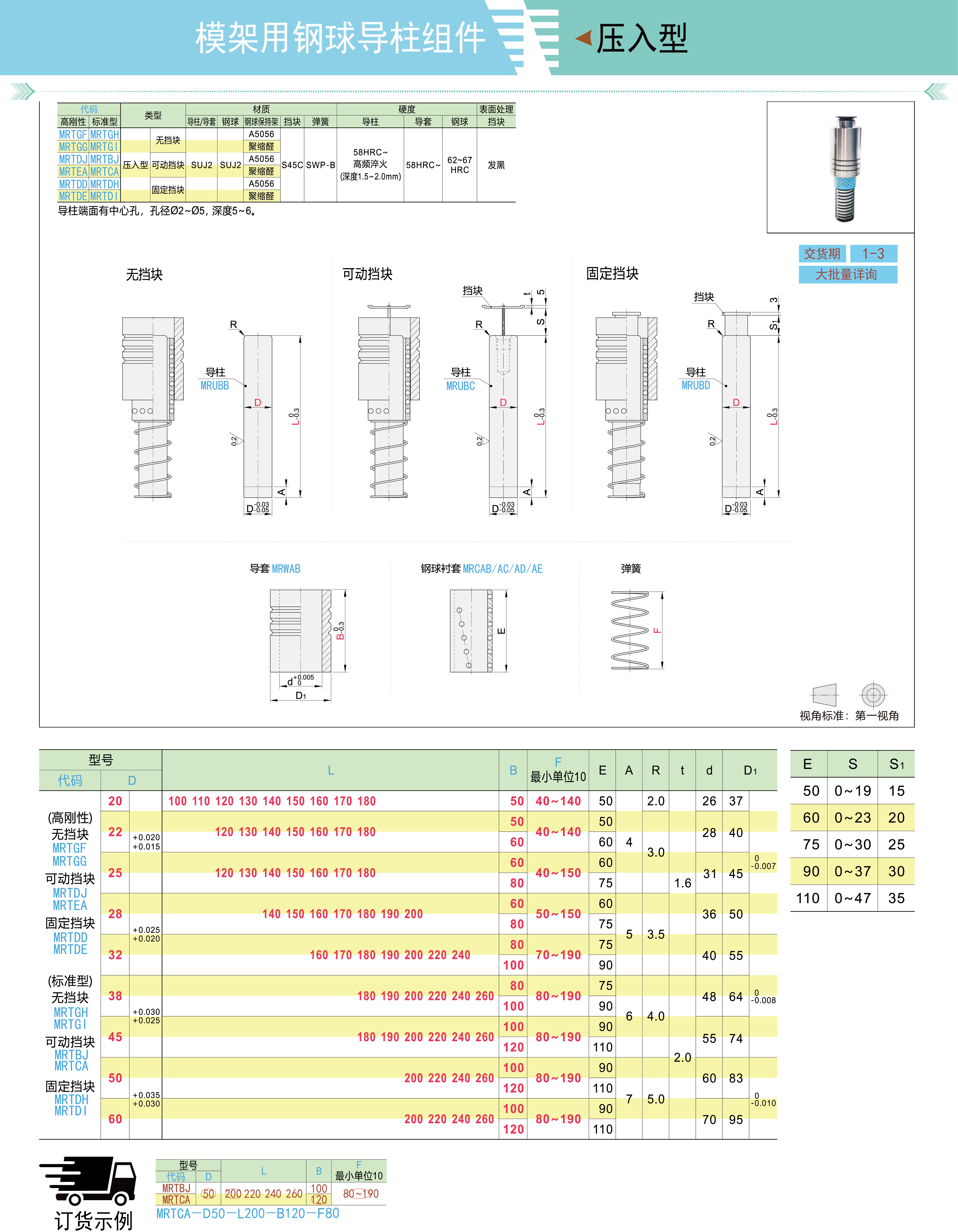 模架用钢球导柱组件 压入型 高刚性 标准型